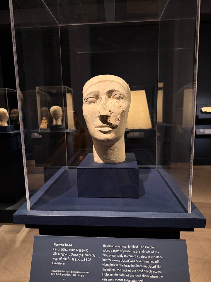 One of the pieces in the museum that stuck the most with me was ironically enough, in one of the Egypt exhibits. It was a series of sculptures called “Reserve Heads” which is exactly as it sounds— a set of six clay sculpted heads, each made by the same unknown artist thousands of years ago.